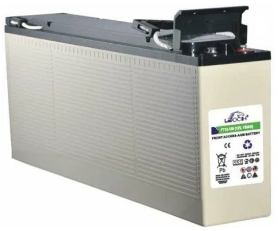 Фронт-терминальный аккумулятор Leoch FT 12-150B (ёмкость 150 Ач, напряжение 12 В) необслуживаемый (не требуется доливать воду), работает в циклическом (260 циклов при 100% глубине разряда) и буферном режиме (12 лет), применяется в ИБП, телекоме, пожарных и охранных системах. Корпус батареи выполнен из прочного ABS пластика, а на крышке располагается односторонний клапан избыточного давления. Благодаря использованию технологии AGM жидкий электролит удерживается в неподвижном состоянии стекловолоконными сепараторами. Фронт-терминальное расположение клемм заметно упрощает и удешевляет эксплуатацию.