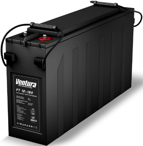 Фронт-терминальный аккумулятор Ventura FT12-180 благодаря своим характеристикам (ёмкость 181 Ач, напряжение 12 В) и компактным размерам обеспечивает максимальную плотность энергии на минимальной площади. Он подходит для установки в 19” и 23” шкафы и стойки, а фронт-терминальное расположение клемм заметно упрощает монтаж и обслуживание. Ventura FT 12-180 выполнен по технологии AGM — стекловолоконный сепаратор удерживает жидкий электролит неподвижно. Аккумулятор используется в ИБП, нефтегазовой сфере, телекоммуникациях и охранно-пожарных системах.