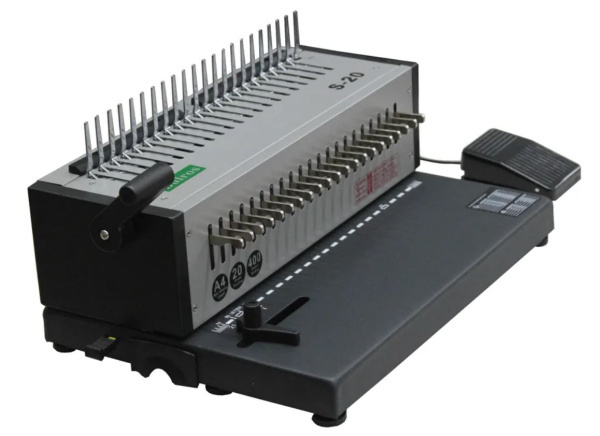 Переплётная машина на пластиковую пружину Bulros S-20 — офисный электрический переплетчик с расширенными возможностями. Прибор предназначен для скрепления листов бумаги в один пакет. Устройства, соединяющие документы на пластиковых пружинах, приобретают как для дома, так и для офиса. С их помощью удобно скреплять каталоги, прайс-листы, рефераты, доклады и курсовые работы. Главное достоинство таких машин — возможность переплетать как небольшие, так и объемные документы.