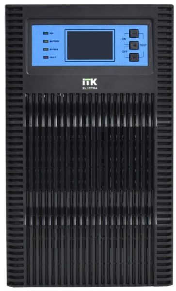 ITK ELECTRA OT – онлайн напольные ИБП. Оснащен расширенным зарядным устройством и клеммной колодкой. Имеет встроенное программное обеспечение, через которое можно осуществлять мониторинг состояния ИБП, удалённо включать или выключать устройство. Поддерживается интерфейс SNMP, что даёт возможность связи с ИБП через локальную сеть.