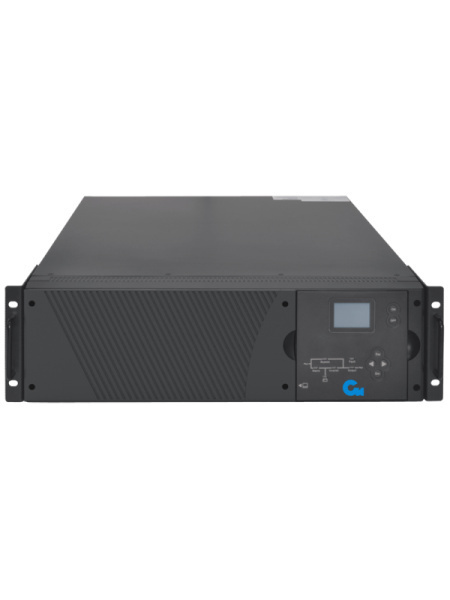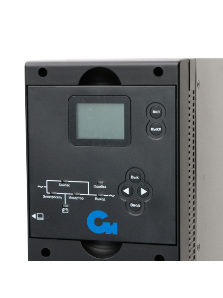 Онлайн ИБП СИПБ10КД.9-11/БПС двойного преобразования полной мощностью 10 кВА для установки в 19'' стойку или на пол с раздельным вводом байпас и цветным ЖК-дисплеем. Выходной коэффициент мощности 0,9. Параллельная работа до четырех ИБП. Два внутренних слота для установки карт управления.