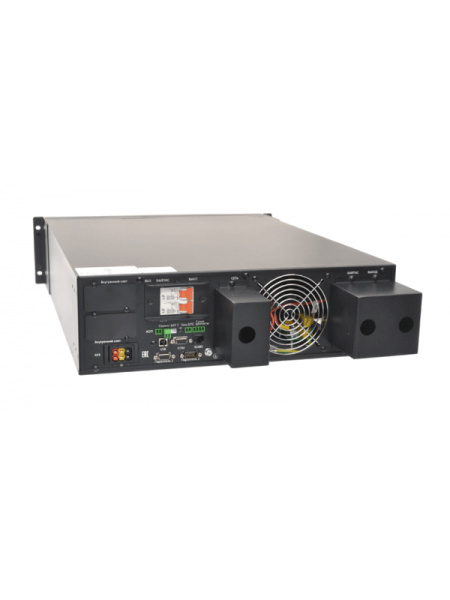 Онлайн ИБП СИПБ6КД.9-11/БПС двойного преобразования полной мощностью 6 кВА для установки в 19'' стойку или на пол с раздельным вводом байпас и цветным ЖК-дисплеем. Выходной коэффициент мощности 0,9. Параллельная работа до четырех ИБП. Два внутренних слота для установки карт управления.