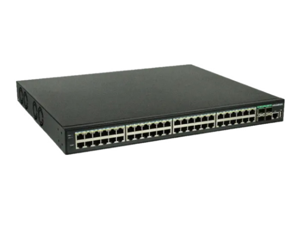 Производительный коммутатор доступа базового уровня с поддержкой PoE++ и конфигурацией интерфейсов 48 х 100/1000M Base-T + 4 х 10G SFP+, предназначенный для использования в корпоративной сети на уровне доступа филиалов и небольших подразделений.