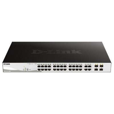 Управляемый (2 уровень), установка в стойку, 24 порта Ethernet 1 Гбит/с, 4 uplink/стек/SFP (до 1 Гбит/с), IEEE 802.1q (VLAN), IEEE 802.3ad (Link Aggregation Control Protocol), IEEE 802.1p (Priority tags), IEEE 802.1d (Spanning Tree), IEEE 802.1s (Multiple Spanning Tree), PoE/PoE+, Web-интерфейс, таблица MAC 8000, DGS-1210-28MP-FL1A