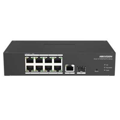 Управляемый, на DIN-рейку, PoE 8х RJ45 10/100Мбит/с, Uplink 1х RJ45 10/100/1000Мбит/с, Uplink 1х SFP 1000Мбит/с, DS-3T1310P-SI/HS