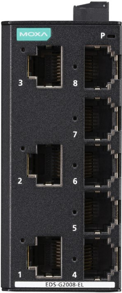 это промышленный неуправляемый коммутатор начального уровня с восемью гигабитными портами Ethernet для подключения сетевых устройств.