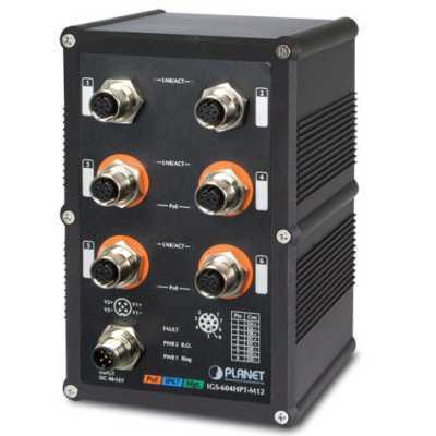 Управляемый (2+ уровень), настольный, 4-Port 10/100/1000T M12 802.3at PoE + 2-Port 10/100/1000T M12, автоопределение MDI/MDIX, PoE, Web-интерфейс, таблица МАС 8K, IGS-604HPT-M12