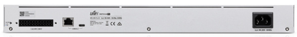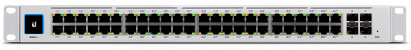 UniFi Switch Pro 48 PoE по своему внешнему виду мало чем отличается от своих предшественников, однако теперь свитч имеет небольшой сенсорный 1.3 дюймовый дисплей. Сетевой интерфейс по-прежнему насчитывает 48 гигабитных портов Ethernet, каждый из которых в автоматическом режиме согласовывает подачу PoE с подключённым устройством. Кроме того модель получила два слота стандарта SFP+.