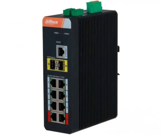 8-портовый гигабитный управляемый коммутатор с PoE, промышленное исполнение.