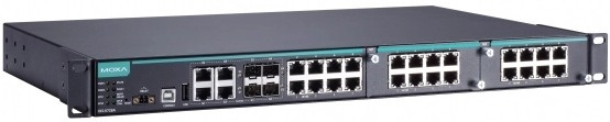 Коммутатор управляемый MOXA IKS-6728A-4GTXSFP-HV-T модульный Ethernet: 8 портов 10/100BaseT(X), 4 комбо-порта 10/100/1000BaseT(X) (RJ45 + SFP), 2 слот