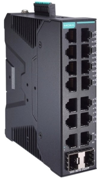 Конфигурируемый Ethernet-коммутатор с 14 портами 10/100BaseT(X), 2 портами 100/1000BaseSFP, с расширенным диапазоном температур от -40 до 75?C, источник питания 12/24/48 В пост. тока.