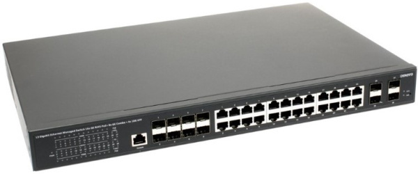 Управляемый L3 коммутатор Gigabit Ethernet на 16xGE RJ-45 + 8xGE Combo (RJ-45 + SFP) + 4x10G SFP+ Uplink предназначен для объединения сетевых устройств и передачи данных между ним.