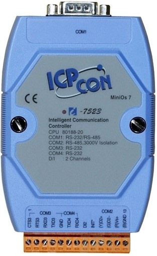 Контроллер ICP DAS I-7524 CR представляет собой встраиваемое коммуникационное устройство с расширенным набором портов, включающим один интерфейс RS-485 и четыре порта RS-232 для организации многоканальной связи в промышленных системах.