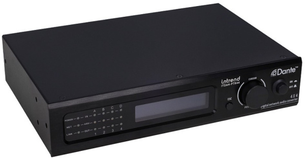 Intrend ITDAN-PTR44 Приемник и передатчик (4/4 канала) из аналогового аудиосигнала в Dante и из Dante в аналоговый аудиосигнал, с разъёмами Phoenix (6pin). Не требует установки драйверов и программного обеспечения.