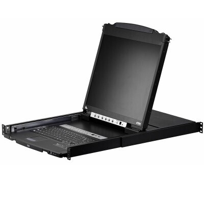 KVM консоль с 19-дюймовым ЖК-дисплеем и двухрельсовым механизмом для выдвижения экрана и клавиатуры