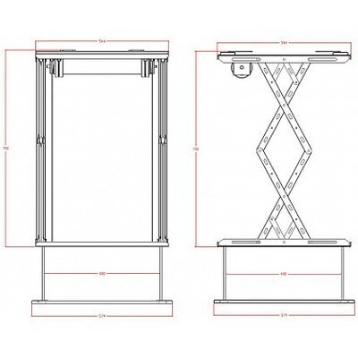 Лифт для проектора с длиной хода 170-750 мм, размер корпуса 574x574x168 мм, размер декор. пластины 574x574 мм. Проектор макс.: 530x470x300 мм, до 20 кг, DSM-PL220