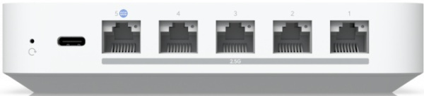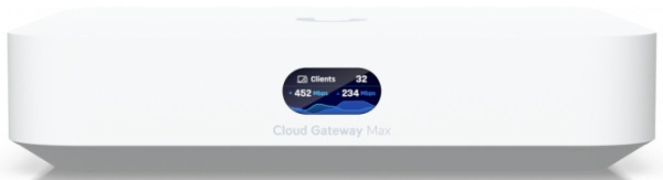 Cloud Gateway Max - шлюз-концентратор приложений UniFi с 5 Ethernet-портами 2,5 Гбит/с, сменным SSD на 512 ГБ в маленьком корпусе.
