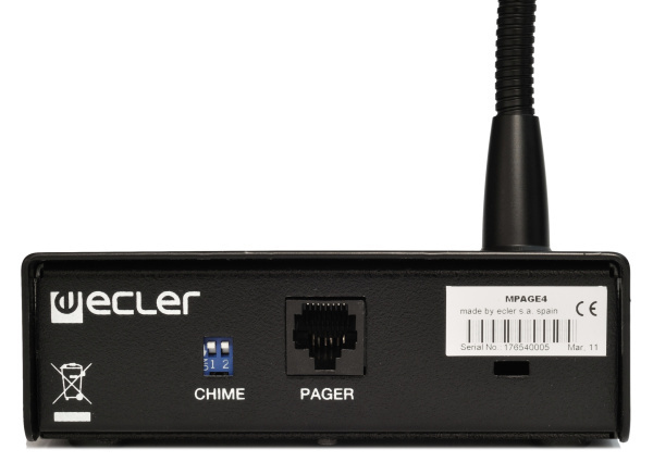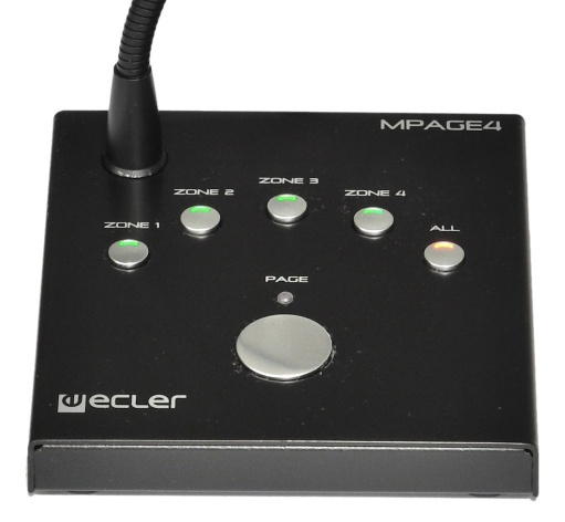 ECLER MPAGE4 – настольная консоль с качественным конденсаторным микрофоном, предназначенная для передачи голосовых сообщений оператора в 4 зоны трансляции. Работает совместно с блоками ECLER серий MIMO54, DAM614, CA или аналогичными. Передача сигналов аудио и управления выполняется по RJ45. по линии связи длиной до 20/80 м (витая пара/экранированный кабель).