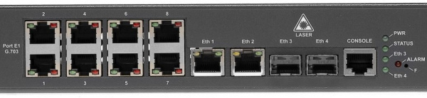 TDMoIP мультиплексор Оптик-ToP (статус ТОРП) предназначен для передачи до 8 цифровых потоков Е1 через пакетную сеть передачи данных и имеет встроенный коммутатор L2 пакетов. Мультиплексор обеспечивается прозрачное независимое подключение TDM-оборудования (ЦАТС, гибкие мультиплексоры и т.д.) поверх единой сетевой инфраструктуры. Выполнен в металлическом корпусе. Питание от сети переменного тока через адаптер 220В или от сети постоянного тока 48В. 8 потоков E1, 2хRJ45-10/100/1000, 2 слота для SFP