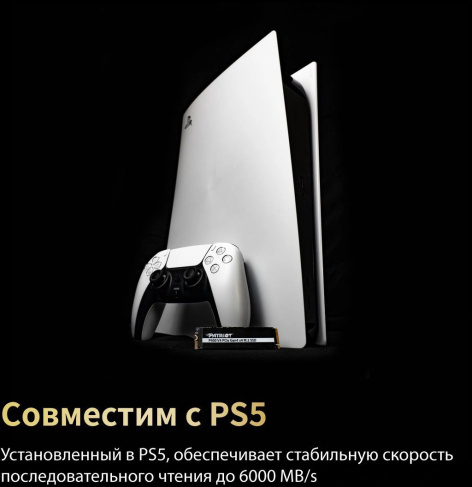 SSD P400 V4 совместим с игровыми консолями PS5. Протестированная скорость последовательного чтения на PS5 достигает 6000 MB/s, что обеспечивает быструю загрузку и плавный игровой процесс.