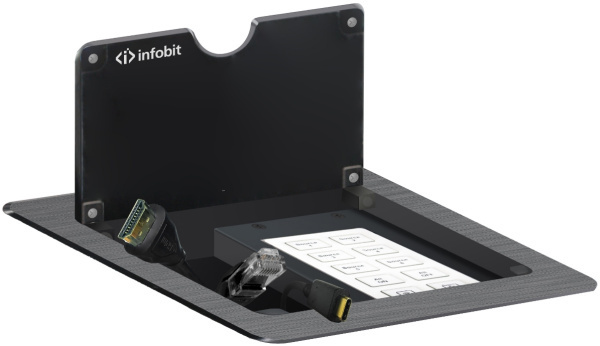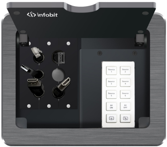 Панель управления Infobit iControl поддерживает 10-кнопочную программируемую клавиатуру управления с функцией PoE. Кнопки могут быть индивидуально запрограммированы, поддерживают настраиваемые метки