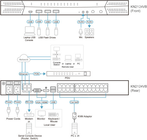 Устройства серии KN обладают высоким разрешением изображения, удвоенной скоростью передачи данных, встроенным криптографическим модулем и двумя сетевыми картами. Они обеспечивают удаленный доступ к консоли через WinClient/JavaClient* и поддерживают приложение для iOS — PadClient. Внешний модем обеспечивает внеполосный доступ для устранения неполадок на уровне BIOS. Серия KN интегрируется с ПО ATEN CC2000 для централизованного управления и совместима с консольными станциями KA82. Поддерживаются системы удаленного управления питанием PDU. Дополнительные функции включают электронную доску сообщений, режим Panel Array Mode, Mouse DynaSync™ и идентификацию адаптера.