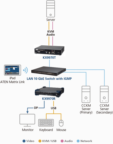Приемник Aten KX9970R-AX-G с поддержкой DisplayPort разрешает до 5K (5120 x 2880 при 30 Гц) и передает сигналы клавиатуры, видео, мыши и USB для доступа к удалённым компьютерам. Работая вместе с передатчиком, устройство обеспечивает соединение через интрасеть, позволяя размещать управляемые системы в безопасной среде. Приемник поддерживает подключение через медные или оптоволоконные сети, а также резервирование питания. Благодаря компактному дизайну, KX9970R можно монтировать в стойку или закреплять на стене. Интеграция с программным обеспечением CCKM добавляет функции обнаружения устройств, аутентификации пользователей и шифрования данных.
