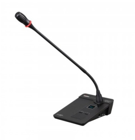 Беспроводной микрофонный пульт председателя Gestton EG-7230C на "гусиной шее" черного цвета. Длина микрофона «гусиная шея» 420 мм. Совместим с блоком управления EG-7230M. Имеет сменный литиевый аккумулятор с временем работы до 8 часов от одного заряда. Микрофонный пульт председателя поддерживает функцию управления пультами делегатов (вкл/выкл).