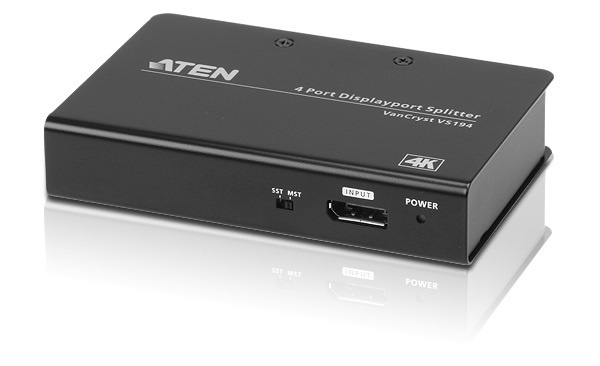Интерфейс - DisplayPort, количество входов - 1, количество выходов - 4, макс. полоса пропускания - 340 МГц, макс. расстояние - 3 метра, макс. разрешение - 4096x2160, VS194-AT-G