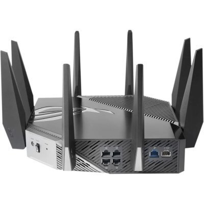 Подключение: Ethernet, Wi-Fi 802.11 b, a, g, n, ac, ax, частотный диапазон 2.4 - 5 ГГц, макс. скорость беспроводного соединения 4804 Мбит/с, LAN-портов 5, несъемных антенн 8, 90IG06E0-MO1R00