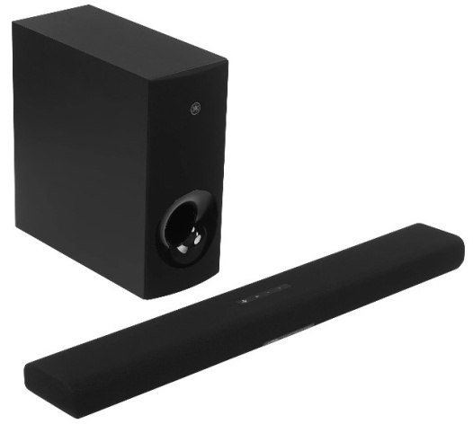 Саундбар Yamaha SR-B40A с корпусами черного цвета позиционируется как акустическая система для ПК или телевизора. В состав комплекса входит как настенная панель шириной 910 мм с выходной мощностью 120 Вт, так и отдельно стоящий низкочастотный динамик с мощностью 80 Вт. Акустическая система с поддержкой технологии объемного звучания Dolby Atmos реализует звуковую схему 2.1 – 2 высокочастотных канала и 1 низкочастотный.