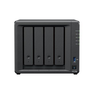 NAS, 4 SATA - 2,5" или 3,5", Intel Celeron J4125 2.0 GHz - 2.7 GHz, 2 ГБ DDR4, 2 RJ-45 x 1000 Мбит/с, настольный, для малого и среднего бизнеса, цвет черный, 2.18 кг, DS423+