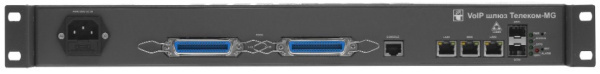 Абонентский VoIP шлюз Телеком-MG-32FXS предназначен для передачи голосовых и факсимильных каналов через сети передачи данных, располагает 32 FXS портами, 3 портами Ethernet 10/100/1000Base-T (RJ45), 2 портами 1000Base-X (SFP) и одним портом для подключения по протоколу RS-232 (RJ45). Электропитание 38-72V D.