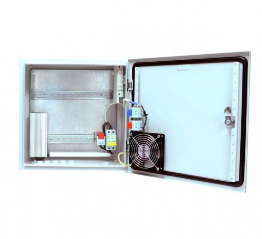 Уличная станция с термостабилизацией и оптическим кроссом. В основе металлический шкаф с классом защиты IP66. Доступное место под установку оборудования на встроенные DIN-рейки: верхняя — 320мм, нижняя — 180мм.
