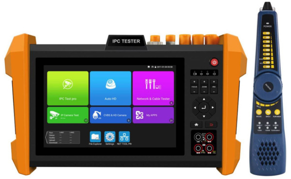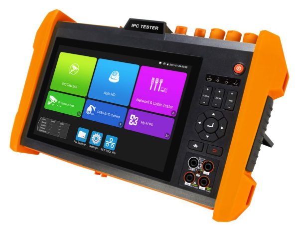TIP2-HOL-MTRС-7 - это универсальный 7-дюймовый сенсорный монитор-тестер AHD/CVI/TVI/CVBS/SDI и IP-видеосистем (базовая модель + мультиметр + измеритель оптической мощности + тестер оптических линий + детектор кабельной трассы + лазерный дальномер + встроенная камера).