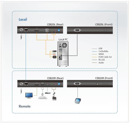 KVM-удлинитель CE840 демонстрирует превосходную производительность передачи звука и видеосигналы с разрешением до True 4K (3840 x 2160 при 60 Гц 4:4:4 и 4096 x 2160 при 60 Гц 4:4:4) на расстояние более 100 метров. Устройство поддерживает HDR 10+. Также поддерживаются различные форматы стереозвука и HDMI-звука, включая LPCM 7.1CH, Dolby TrueHD, Dolby Digital Plus и DTS-HD Master Audio.