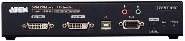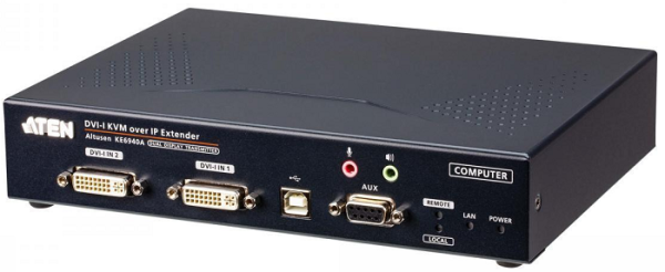KVM-удлинитель Aten KE6940A поверх протокола IP состоит из высокопроизводительного IP-передатчика (KE6940AT), который подключается к компьютеру и приемника (KE6940AR), обеспечивающего консольный доступ из отдельного расположения. Он предоставляет доступ с удаленной USB-консоли (включающей USB-клавиатуру, мышь и DVI-монитор) к компьютерной системе через интрасеть и позволяет пользователям расположить компьютеры в безопасной среде с контролируемой температурой, изолированной от рабочей среды пользователя.