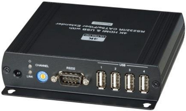 Удлинитель (комплект приёмник + передатчик) по Ethernet. Позволяет передавать HDMI, USB, аудио, RS232 и сигнал ИК управления. Встроенный USB-хаб на 4 порта с поддержкой внешних накопителей. Можно использовать совместно с SR01 или гигабитным коммутатором для увеличения расстояния передачи сигнала.
