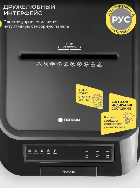 ГЕЛЕОС АП37-4 уничтожитель бумаг с функцией автоподачи. Позволяет уничтожать документы стопками, вместо того чтобы загружать их по несколько листов.