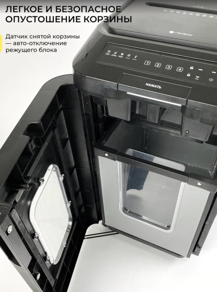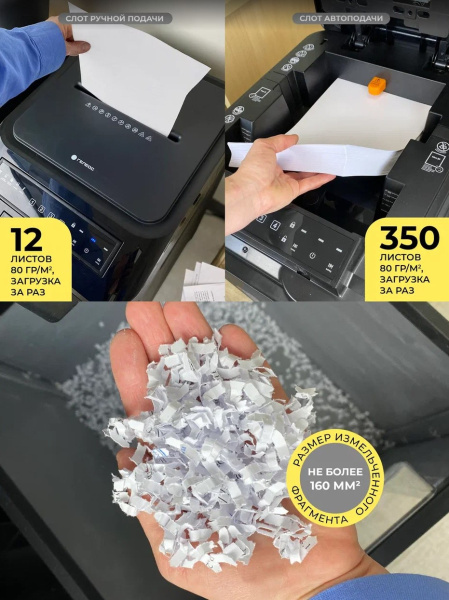 ГЕЛЕОС АП55-4 архивный уничтожитель бумаг с функцией Автоподачи. Позволяет уничтожать документы стопками, вместо того чтобы загружать их по несколько листов. При загрузке листов можно установить одноразовый кодовый пароль, который скидывается по окончании уничтожения пачки листов. Автоподача до 350 листов 80г/м2. Время уничтожения - 12 мин. Рабочий цикл аппарата составляет 240/45 мин, где первое число — это время бесперебойной работы, а второе — время необходимого простоя. Автоподача - легкое и удобное уничтожение листов, экономит время и трудозатраты. Большая, вместительная корзина обеспечит удобство при наполнении отработанного материала, а подробная индикация на русском языке поможет разобраться в режимах работы.