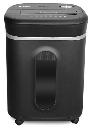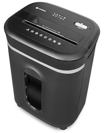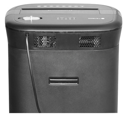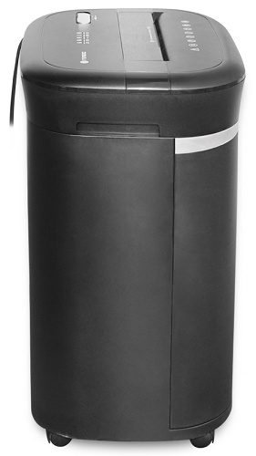 Высокопроизводительный шредер (уничтожает одновременно до 18 листов офисной бумаги). Способен переработать скрепки, скобы и пластиковые карты, а также CD/DVD-диски.