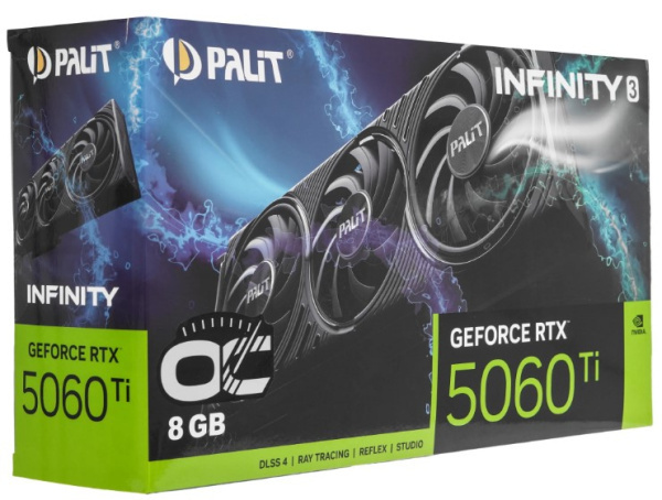 PALIT GeForce RTX 5060 INFINITY 3 - это мощная игровая видеокарта нового поколения, разработанная для современных требовательных игр и профессиональной работы с графикой. Модель оснащена продвинутой системой охлаждения с тремя вентиляторами, что обеспечивает эффективное рассеивание тепла даже при максимальных нагрузках.