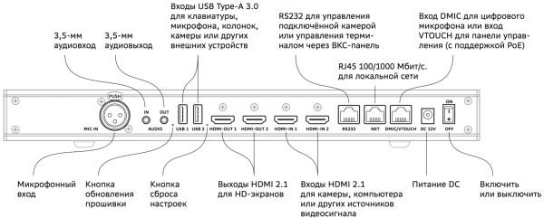 Терминал Sber SDTM-001 — высокопроизводительный кодек для переговорных комнат малого и среднего размера. Поддерживает подключение внешнего оборудования для видеоконференций: камеры, массива микрофонов, панели управления, дисплеев. Встроенный нейронный сопроцессор на лету применяет Al-алгоритмы улучшения звука: выравнивает громкость, подавляет эхо и удаляет шум. С помощью этого оборудования терминал обеспечивает двустороннюю связь: транслирует видео и звук на оборудование в других переговорных комнатах, а также получает и выводит видеоконтент, полученный оттуда. Для работы терминал должен быть подключён к серверу SaluteJazz через интернет или локальную сеть (при установке на площадке предприятия). Терминал может использоваться для оборудования переговорной комнаты как в производственной, так и в непроизводственной сфере экономической деятельности.